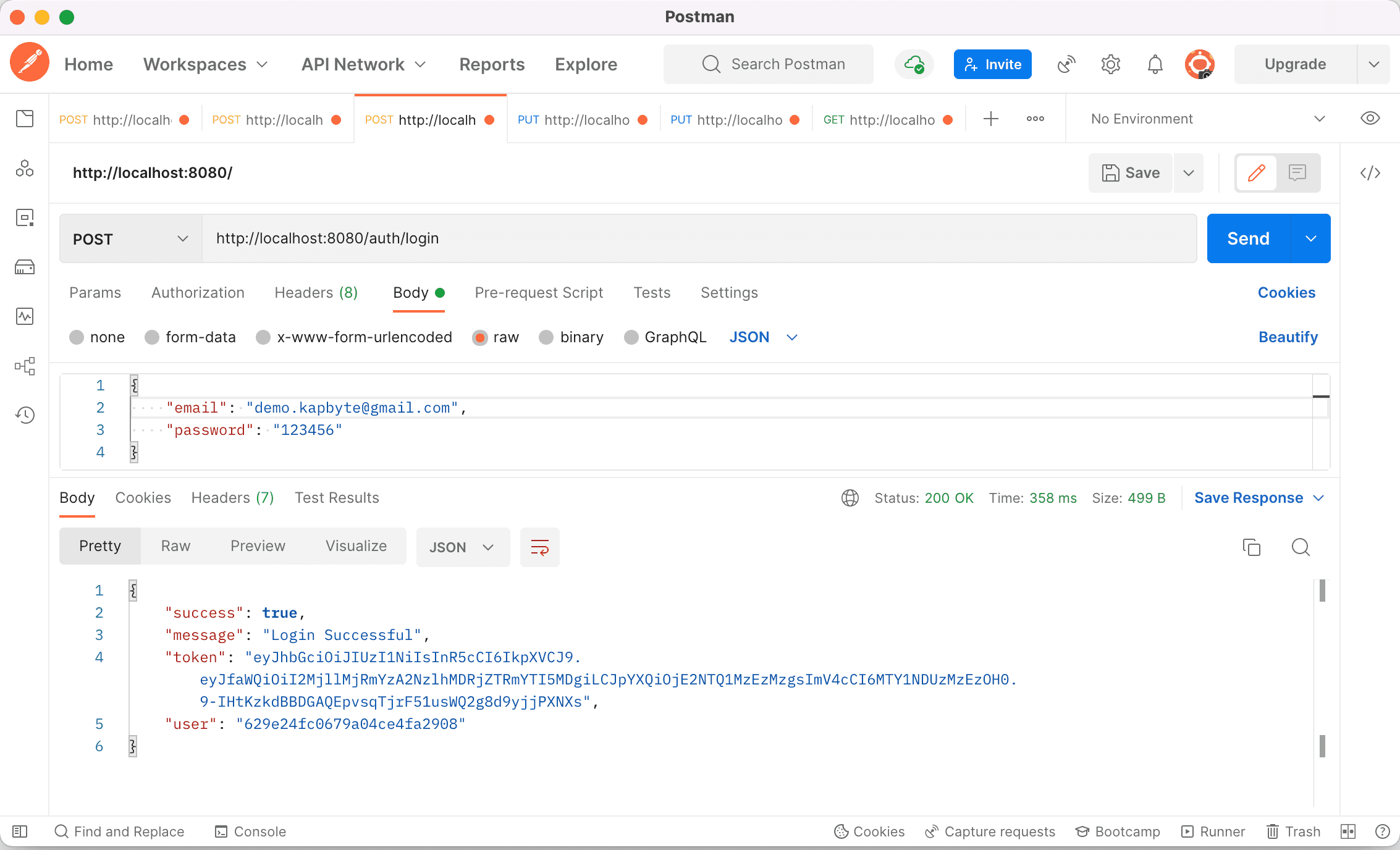 module.exports = router;Now let’s call the loginController on Postman as shown below.