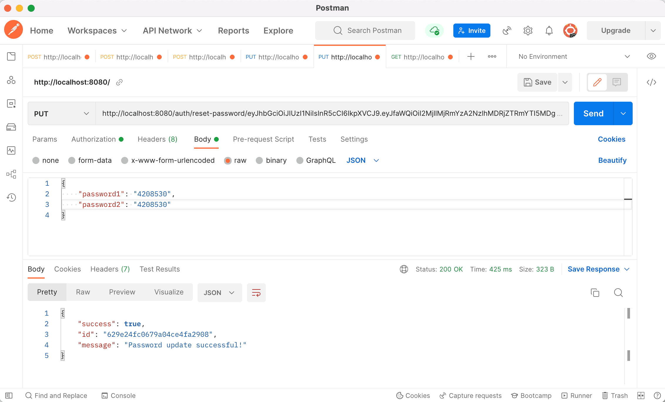 module.exports = router;Now let’s reset our password by entering a new password, and pasting the token like http://localhost:8080/auth/api/forgot-password/our-password-token as shown below.